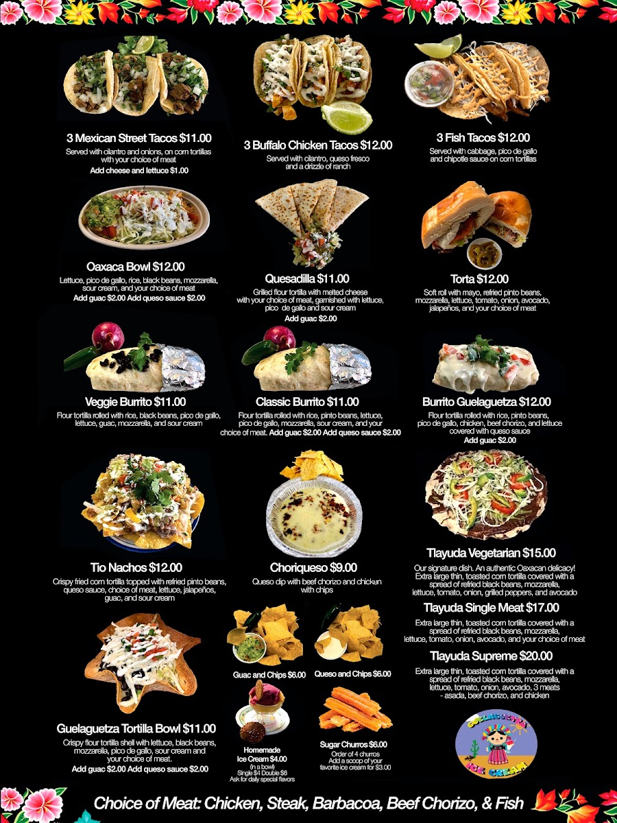Guelaguetza Food Truck offers a menu that effortlessly blends traditional Mexican flavors with approachable comfort food, making every visit a flavorful adventure. The Mexican Street Tacos stand out with tender, well-seasoned fillings like Beef Chorizo, bursting with spice and depth. Sweet cravings are equally satisfied with desserts such as the indulgent Minty Oreo and the creamy Pie de Queso, providing the perfect balance to the savory selections. Seafood lovers will appreciate the fresh and expertly cooked Fish Grilled Tilapia, while breakfast options like the hearty Omelette with Hash Browns and Wheat Toast or the classic Egg & Hash Browns cater to those seeking a satisfying start to the day. For a more filling lunch or dinner, the Taco Plate and Classic Burrito offer generous portions that are both flavorful and comforting, showcasing a menu that is consistent in quality and variety. Each dish demonstrates careful attention to flavor, presentation, and freshness, ensuring that whether stopping by for a quick bite or a leisurely meal, every choice delivers a memorable taste of Mexico in Marysville.